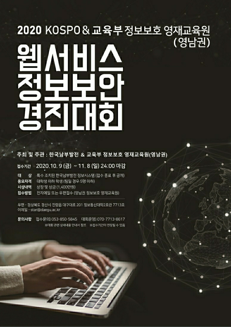 한국 남부발전과 교육부 정보보호 영재 교육원 주최로 열리는 웹 서비스 정보보안 경진대회입니다 !
